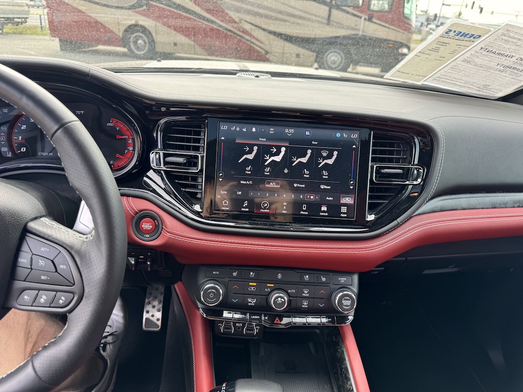 We special ordered 2021 Durango RT with Tow N Go package because we needed extra capacity to pull our 30 feet travel trailer weighting around 6500 lb with a possibility to upgrade it eventually to a slightly heavier and better RV. Before Durango we owned 2011 Mercedes ML 350 which never let us down, although it was somewhat underpowered for the task, and at some point you just can't argue with age and mileage anymore. Going from Mercedes to Dodge may not make sense for some people but the Durango exceeded expectations. First of all, it impressed with truly luxurious ride, a unique combination of firmness and isolation from road imperfections in the same time, very little body roll, precise steering for a tall and heavy vehicle and secure sport car braking. This SRT suspension with Bilsteins can make magic! With the trailer attached there is very little rear sag, the combination felt very secure and stable, with no sway, no interference from 18 wheelers, even with 25 mph winds or at 70+ mph. Going faster is possible but trailer tires would not like it and gas mileage will suffer badly. Hemi with performance exhaust provides anything, from rumble to visceral scream, depending on accelerator pedal position, but gets virtually silent during steady cruise. The vehicle came nicely equipped, with very soft leather, heated and cooled seats, real and easy to understand and use buttons, although you can use touchscreen if you want. Cargo space is generous, accommodates lots of luggage and camping gear, given, that we have little or no chance to use the 3rd row. We had no reliability problems so far. Oil change was needed at 5500 miles as per life counter, and the Durango received full synthetic one. Hemi can run hot under load and it does not like old or poor quality oil. I could not appreciate any difference between regular and mid grade gas. Fuel economy is dismal in traffic or while idling, but on highway you can get lower 20th if you are easy with your gas pedal (you don't really want to be too easy with it). Is Durango for everybody? No. If you need an SUV just to go to the shopping mall or carry kids around, get a Pallisade/Telluride or a new Mercedes or BMW, if you have some cash to spend. And don't worry about anything crazy. But if you plan long road trips, towing camper or boat, like sport vehicle and driving, Durango will not disappoint, especially with TNG package. Yes, there are Tahoes and Expeditions, but nothing will ride and handle like big and powerful unibody vehicle with performance components, while the benefits of full frame to towing capacity and performance are not evident, when compared with this Durango. In the era when comfy suspensions, unisex styling and weight saving rule and 2 liter turbo motors are used for any application, Durango is a nice surprise. Get it while they are still legal!